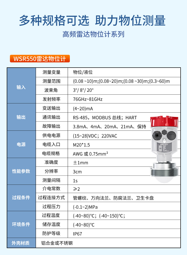 您的位置: 首頁 > 水位雷達液位計 → 聯測WSR200雷達液位計80GHz藍牙輸出